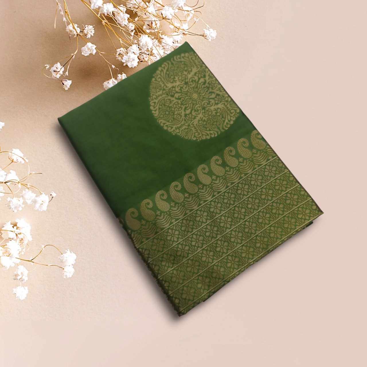| Name : | MF 1740 GREEN SOFT LICHI SILK SAREE |