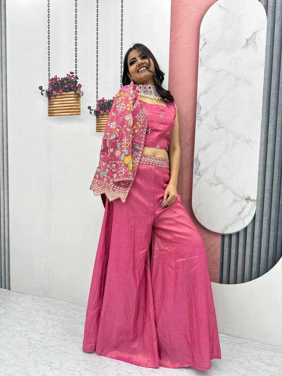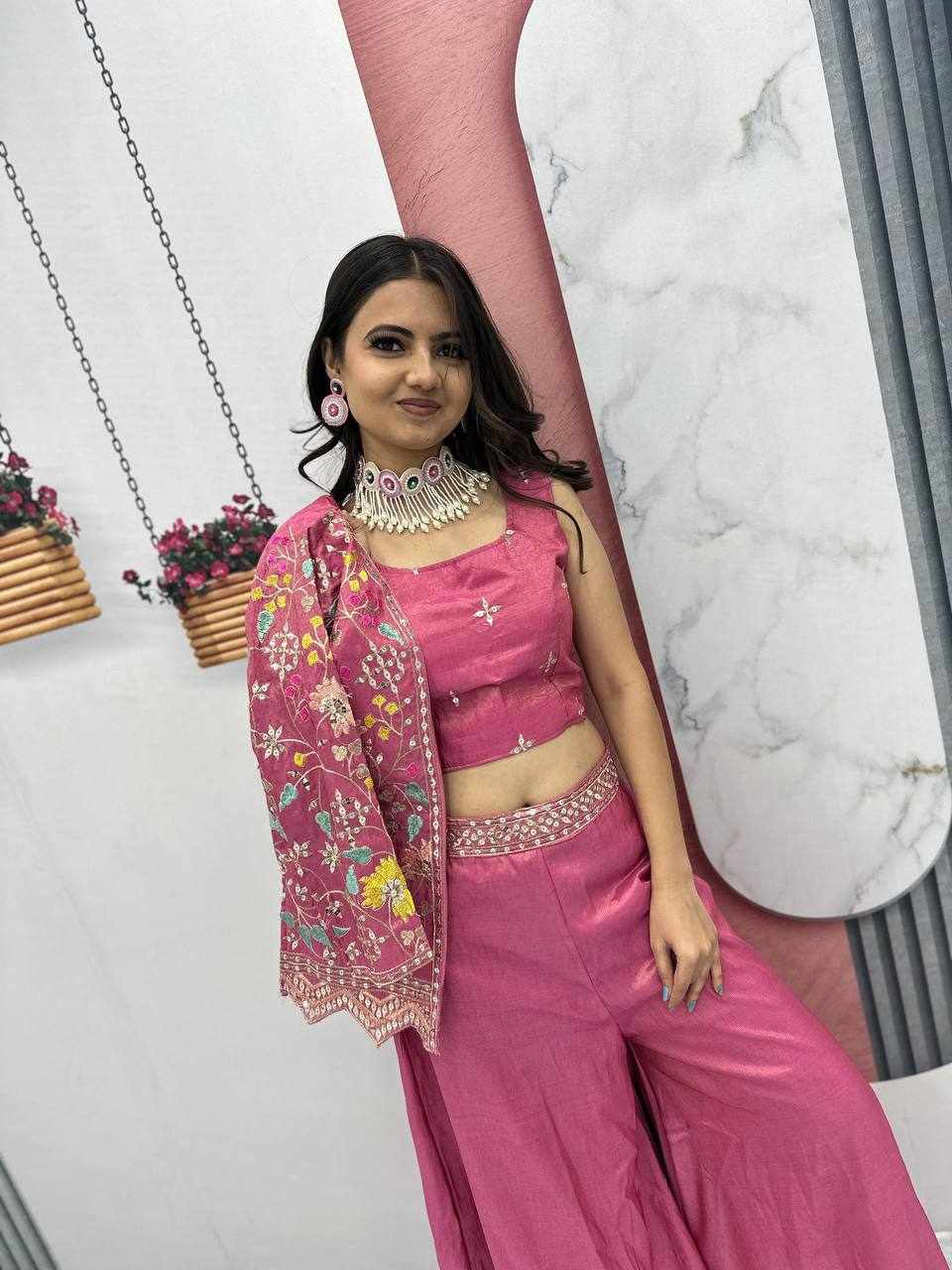 Pc 484 Pink Pure Tissue Simmer Party Wear Dress
