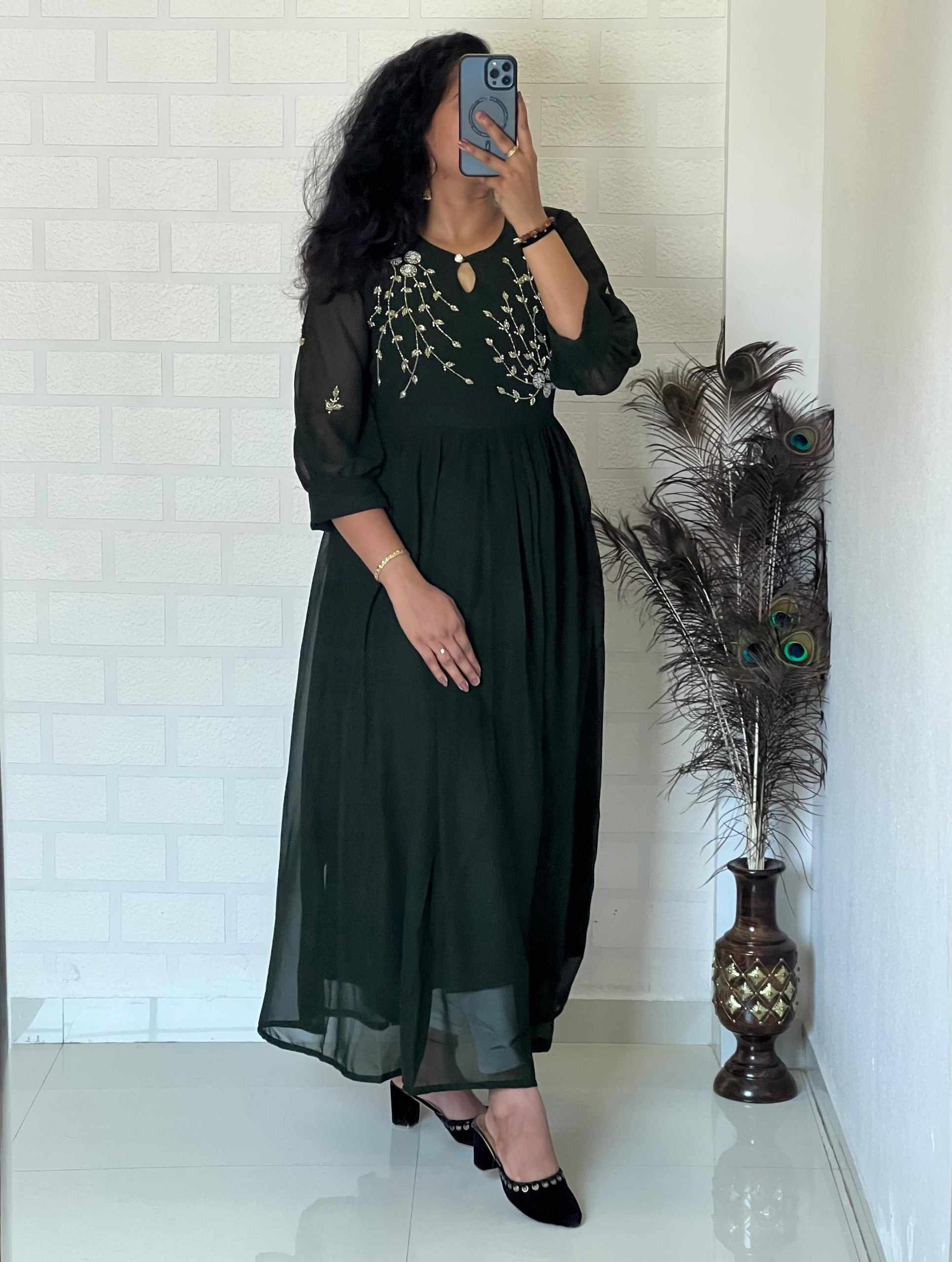 Reviews for WM09 GREEN BLOOMING GEORGETTE HANDWORK KURTI